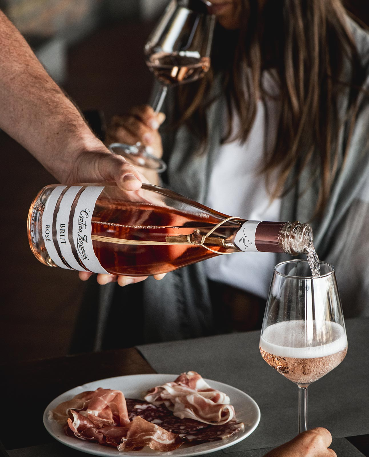Nel calice si presenta con un delicato colore rosato tenue e un perlage vivace e persistente. Al naso offre un bouquet elegante con note di piccoli frutti a bacca rossa — lampone, fragola, ribes rosso selvatico e melograno — arricchite da intriganti nuance speziate di ginger. Al palato è schietto e generoso, facile da bere per freschezza e sapidità, con le bollicine che accompagnano le cadenze fruttate verso un finale dolce-amaricante.
