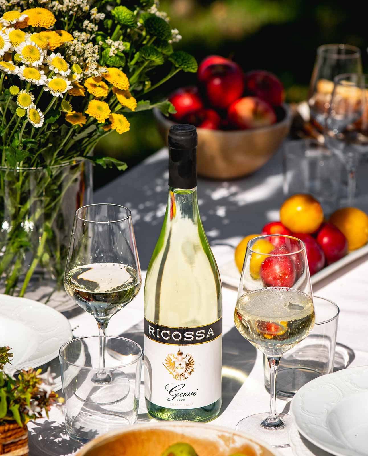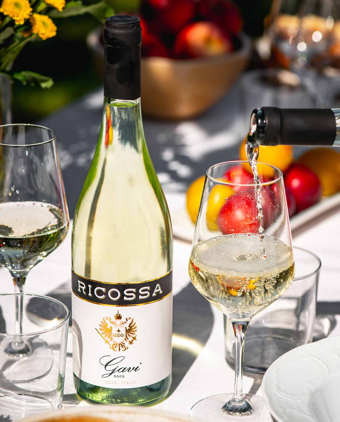 Il Gavi DOCG di Ricossa è un vino bianco elegante e raffinato, prodotto con uve Cortese coltivate nelle colline del Gavi, in Piemonte. Il terreno calcareo-argilloso tipico della zona, arricchito da pietre silicee, dona al vino freschezza e mineralità. Dopo la vendemmia, che avviene a metà settembre, il vino subisce una fermentazione a temperatura controllata in acciaio, seguita da un breve affinamento in bottiglia che ne preserva i profumi freschi.