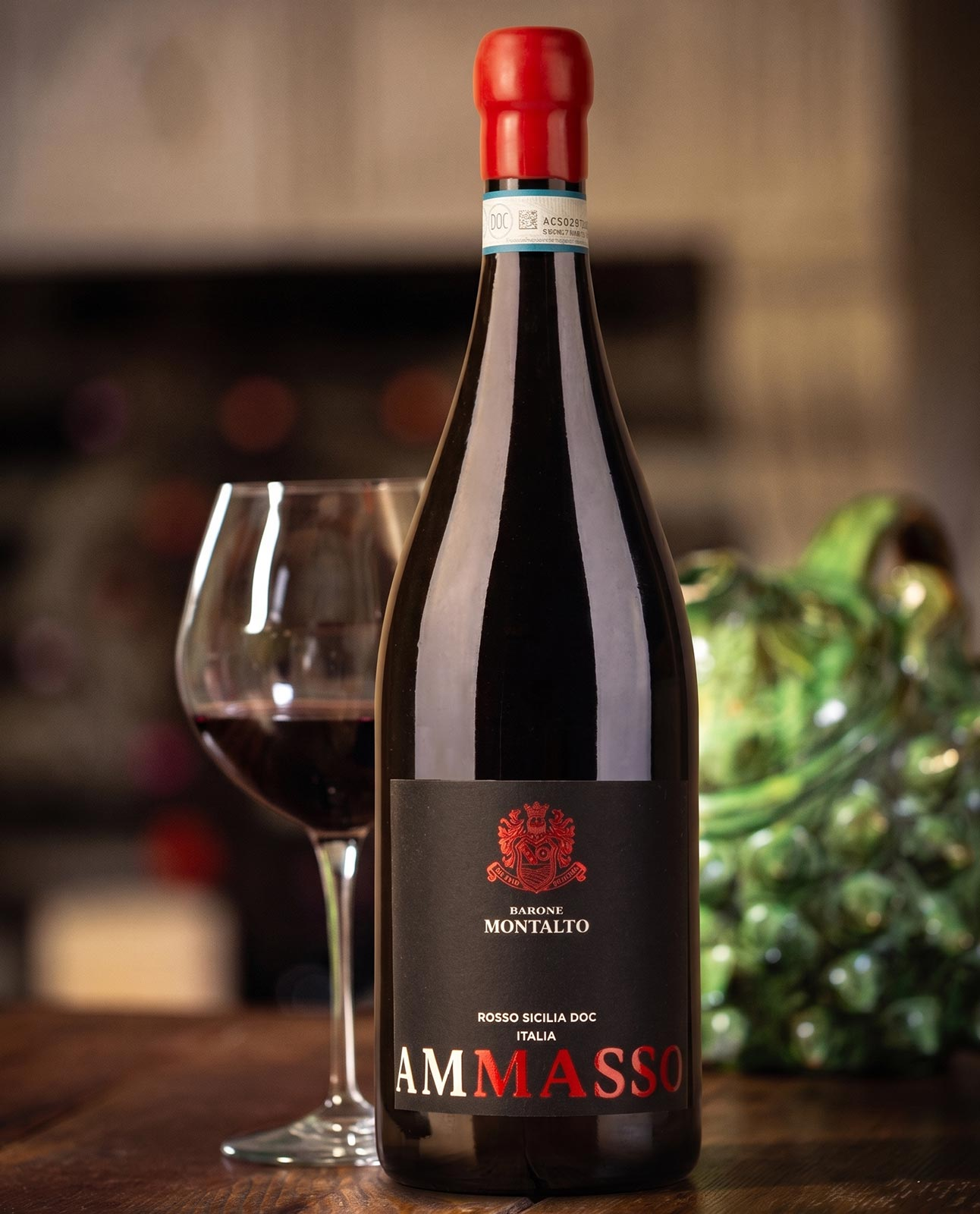 Ammasso Rosso Sicilia DOC Magnum di Barone Montalto è l’espressione più generosa e conviviale di uno dei rossi più iconici della cantina, proposto nel prestigioso formato da 1,5 litri. Le uve a bacca rossa, selezionate dai vigneti che sorgono sui terreni calcarei e argillosi ricchi di ferro della Sicilia occidentale. Alla vendemmia segue un periodo di appassimento delle uve in fruttaia ventilata a temperatura ambiente, tecnica che concentra aromi e complessità. Il vino affina poi per 8-10 mesi in piccole botti di legno a tostatura media.